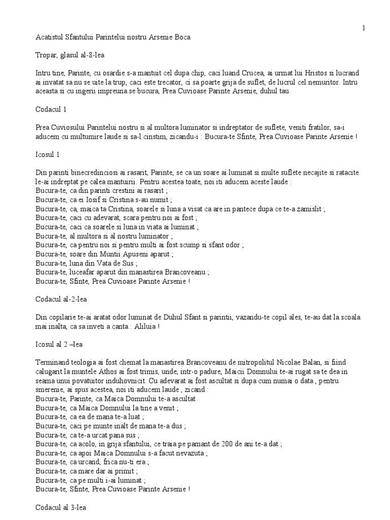 Acatistul sfantului arsenie boca. Acatistul sfantului parintelui nostru arsenie boca. S lava tie dumnezeul nostru slava tie. S lava tie dumnezeul nostru slava tie. Slava tie dumnezeul nostru slava tie.