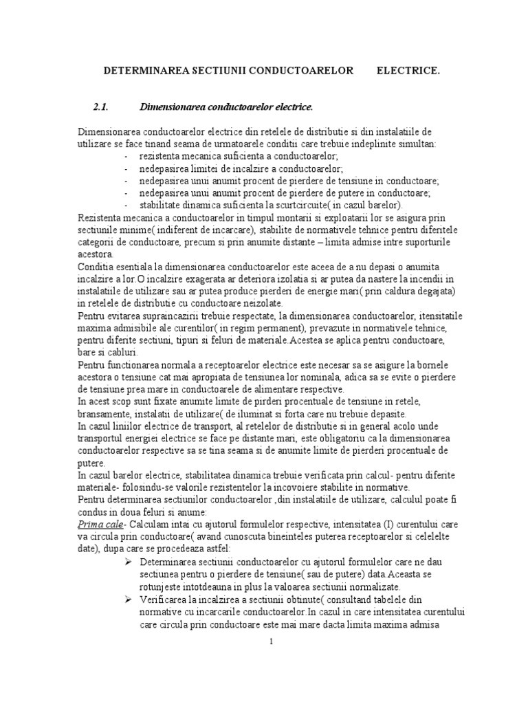 Download as pdf txt or read online from scribd. Calculul sectiunii conductoarelor pdf flipsnack is a digital catalog maker that makes it easy to create publish and share html5 flipbooks. A dimensionarea conductoarelor electrice. Dimensionare conductoarelor electrice din retelele de distributie si din instalatiile de utilizare se face tinandu se seama de urmatoarele conditii care trebuie indeplinite simultan rezistenta mecanica suficienta a conductoarelor.