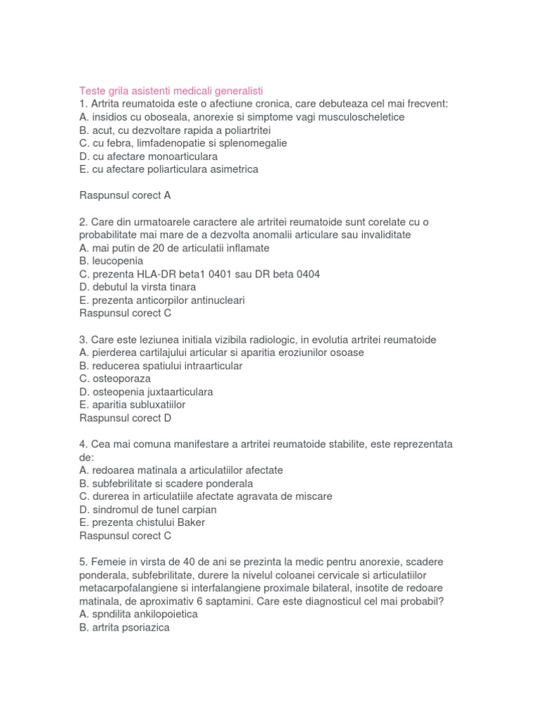 Carte teste grila asistenti medicali generalisti. 30 de zile retur. Teste grila lucretia titirca 1. Joi 12 noiembrie 2009. Teste grila asistenti medicali generalisti 2013.