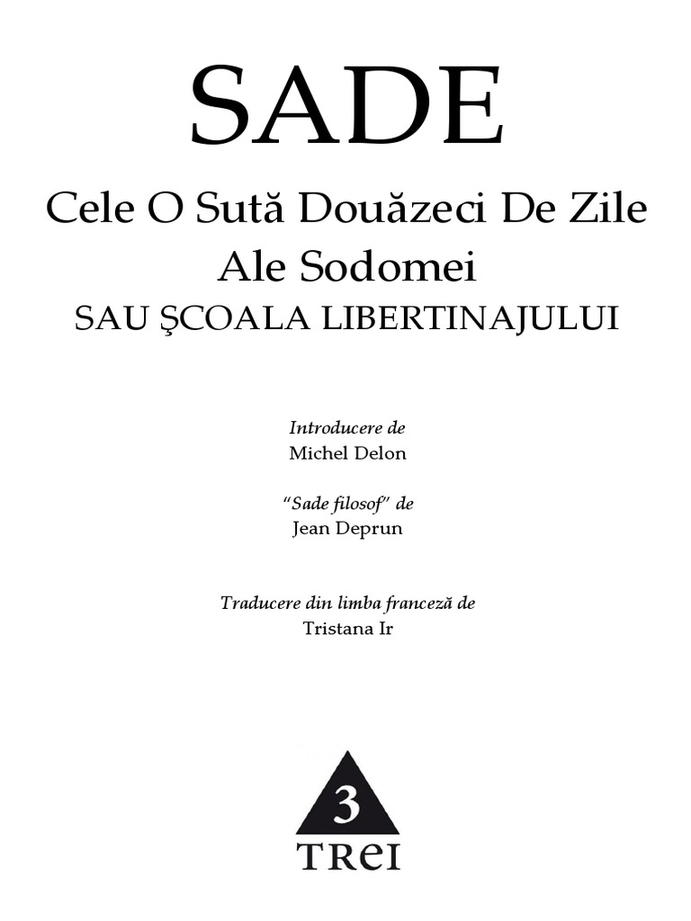 Cele 120 de zile ale sodomei pdf. A bibliography and guide to the literature. Marchizul de sade cele 120 de zile ale sodomei v. Ir tristana trad 821 133 1 31 135 1 această ediţie a fost tradusă după sade œuvres les cent vingt journées de sodome ou l école du. There is no description.