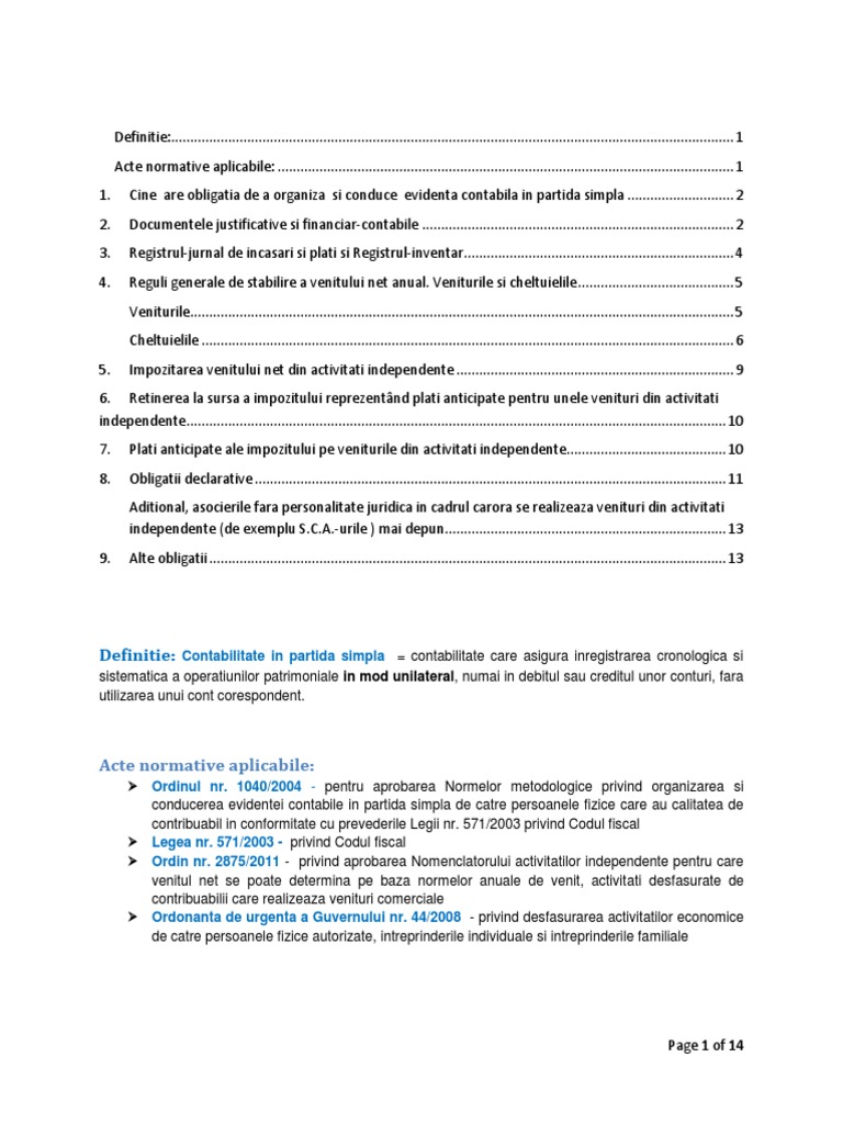 Un astfel de avantaj este oferit si de ghidul practic contabilitatea in partida simpla intocmit si cu ajutorul unor sfaturi practice de la autoarea best seller ului cum sa tii contabilitatea unei firme mici chiar daca nu esti contabil o lucrare vanduta in peste 5 500 de exemplare. Orice operatiune economico financiara se consemneaza in momentul efectuarii ei intr un document care sta la baza evidentierii in contabilitatea in partida simpla dobandind astfel calitatea de document justificativ. 139 din 24 februarie 2015 si care a abrogat ordinul mfp nr. 571 2003 privind codul fiscal.