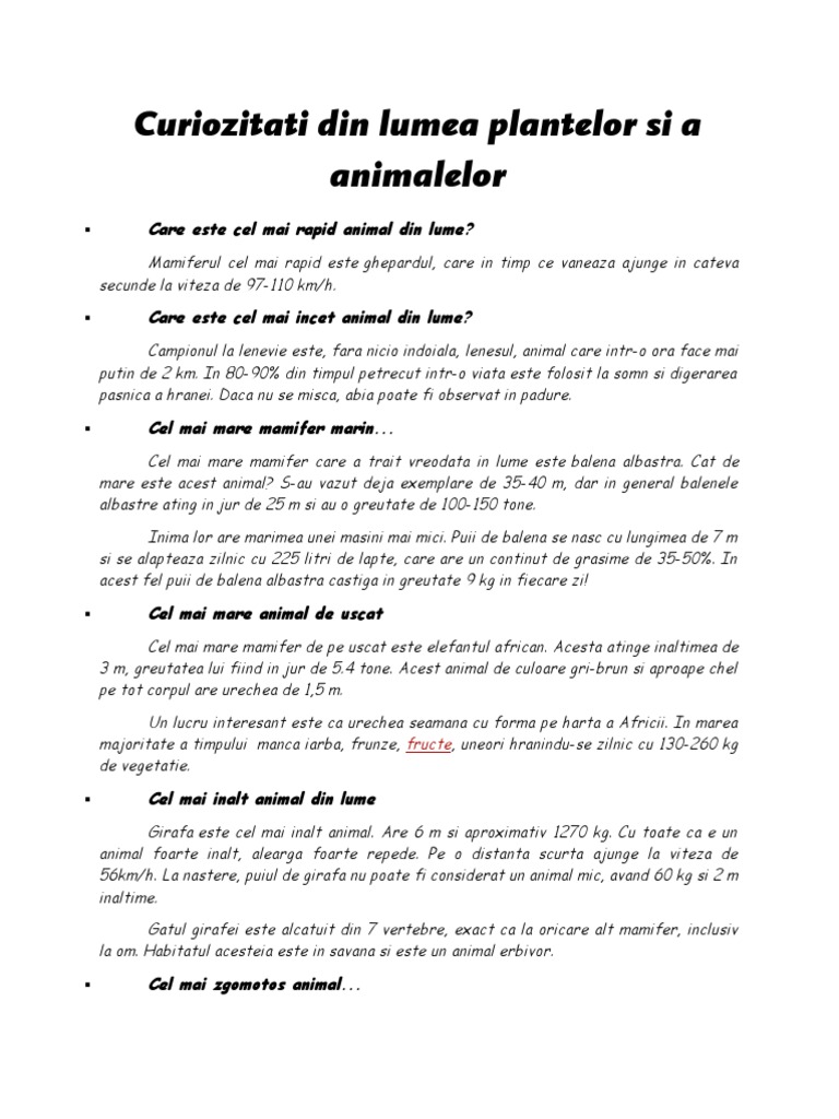 16220 clase participante 3788 școli din românia 11835 teste publicate 18 distincții câștigate. Informatii uimitoare ciudate si amuzante despre animale salbatice si domestice. Este deja cunoscut faptul ca elefantii sunt fiinte empatice si isi plang mortii. Lumea animală este plină de curiozităţi şi lucruri fascinante.