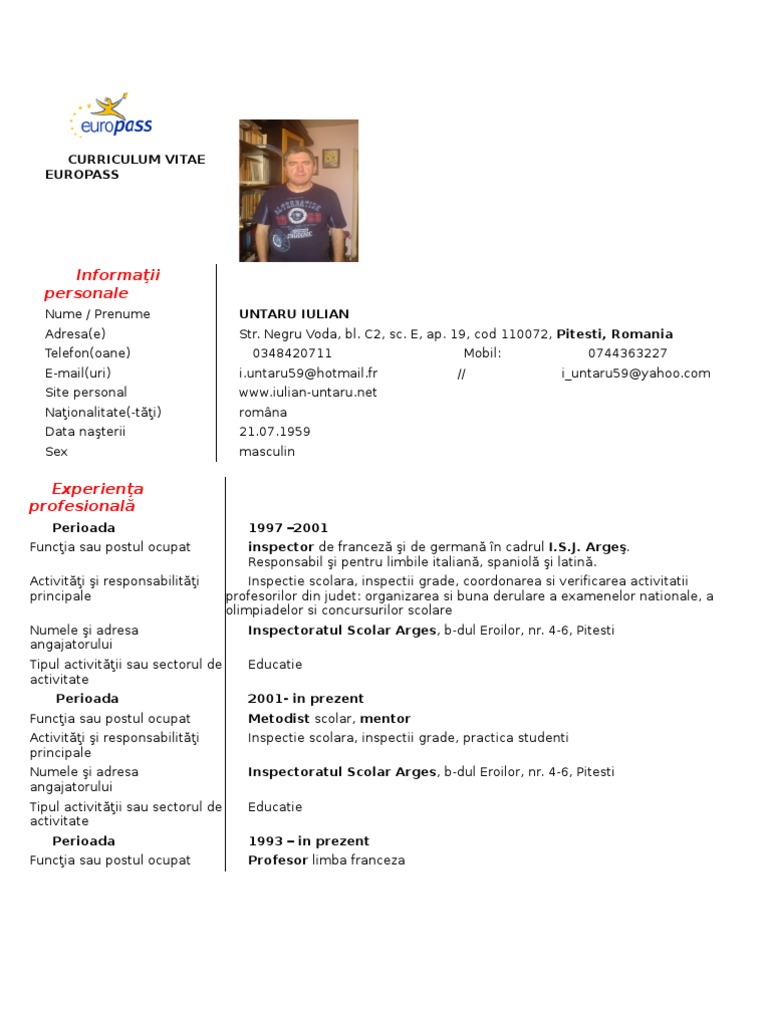 Membru în comisia de organizare a concursului naţional de matematică adolf haimovici. Cv ul europass este documentul de baza al portofoliului si ofera un cadru comun de descriere a competentelor si calificarilor. The europass cv is one of the best known cv formats in europe. Este un model de cv european ce poate fi folosit la portofoliul profesorului.