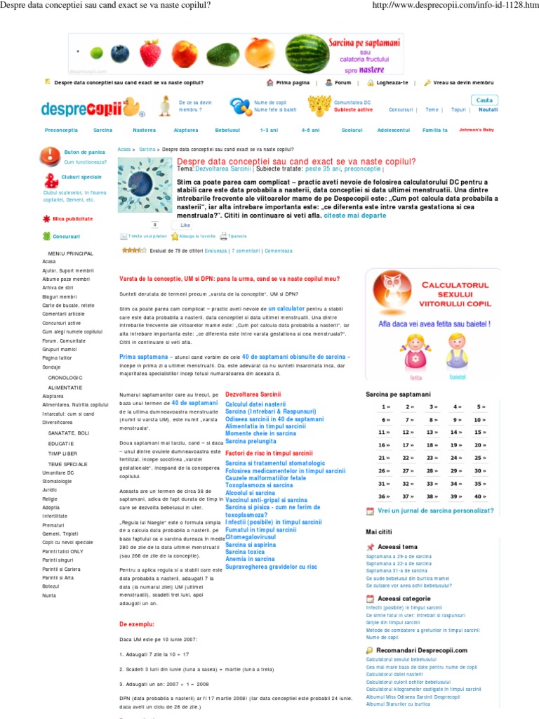Data probabila a nasterii in functie de data conceptiei. Iti vom calcula si lista completa cu sarcina pe saptamani special pentru sarcina ta. Da este adevarat ca nu sunteti insarcinata inca dar majoritatea specialistilor incep totusi numaratoarea din aceasta zi. Intervalul de 280 zile se verifica in functie de ziua saptamanii ultimei menstruatie si se ajusteaza data probabila a nasterii la aceeasi zi a saptamanii. Calculatorul avansat de sarcina de mai jos este mult mai exact mai precis decat alte calculatoare care circula pe net si are o precizie mai mare de a determina data probabila a nasterii calculatorul mittendorf williams este considerat cel mai precis calculator de calculare a varstei sarcinii si a datei in care se astepteapa nasterea.
