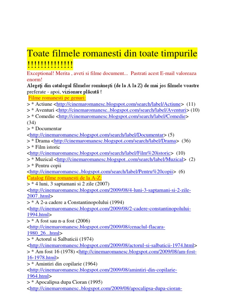 Filme Romanesti Din Toate Timpurile