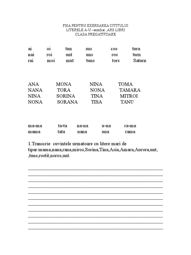 Fise De Citit Clasa Pregatitoare Litere De Tipar