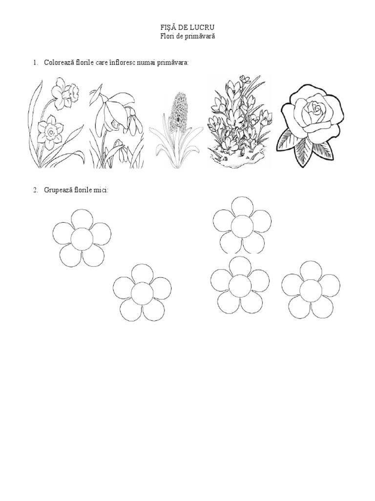Fise de lucru flori de primavara. Dacă ți a plăcut 40 de planse de colorat cu flori de primavara te invit să ne votezi să lași un comentariu pe facebook sau direct pe site. Fisa de lucru ds flori de primavara nivel i. Posted in exercitii grafice fise indemanare and tagged fise 1 martie flori flori primavara ghioceii gradinita planse 1 martie primavara. Fisa de lucru pentru cunoasterea mediului tema primavara.