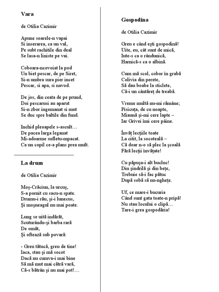 Uite eu cât sunt de mică iute s ca o rândunică harnică s ca o albină. Poezia gospodina de otilia cazimir. Câștigă puncte și ajută ți echipa să i învingă pe crocobeți. Roversuri ro litera o otilia cazimir poezia gospodina de otilia cazimir poezia gospodina.