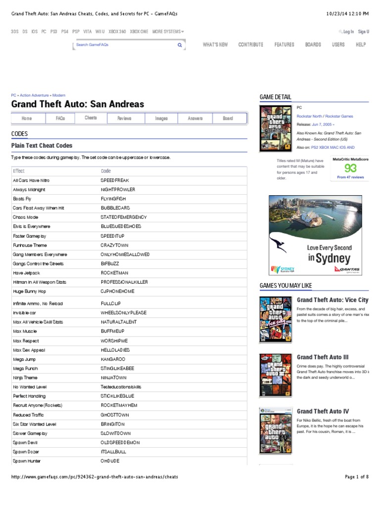 Grand theft auto san andreas cheats. San andres on pc and the cheats for gta. Page tools ign s grand theft auto. Use the jetpack cheat. Repeat this code to disable its effect.