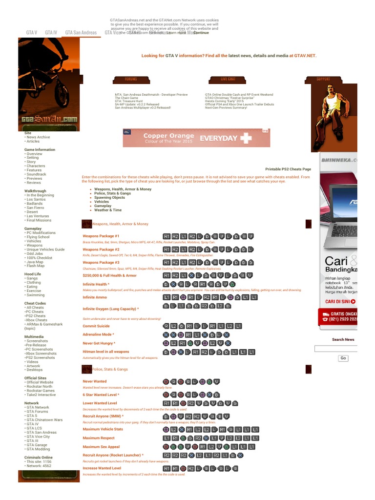 Needless to say this is not recommended for people to try at home since it also requires special software to make this work. While playing the game press x 2 square r1 l1 x down left x. While playing a game press x 2 square r1 l1 x down left x. There are 77 cheat codes for gta san andreas on playstation 2.