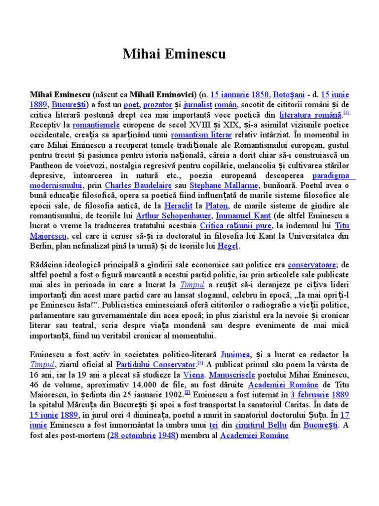 Mihai eminescu referat pdf. Mihai eminescu basme item preview 1 mihai eminescu basme pdf. Remove circle share or embed this item. Este aceea de a naste alte opere mari sau macar de a modela omenescul in sine. Mihai eminescu romanian pronunciation.