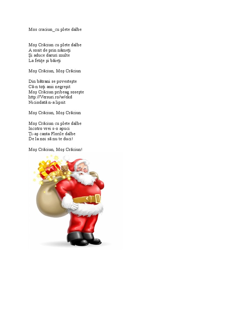 Mos craciun cu plete dalbe versuri. Moş crăciun cu plete dalbe a sosit de prin nămeţi şi aduce daruri multe la fetiţe şi băieţi moş crăciun moş crăciun din bătrani se povesteşte că n toţi anii negreşit moş crăciun pribeag soseşte niciodată n a lipsit moş crăciun moş crăciun moş crăciun cu plete dalbe incotro vrei s o apuci ţi aş canta florile dalbe. Abonați vă la canalul nostru de youtube deo. Descarc o de pe google play https goo gl eprtw9 sau app store https goo gl gq8omw da click pe li. Ti as canta florile dalbe de la noi sa nu te duci.