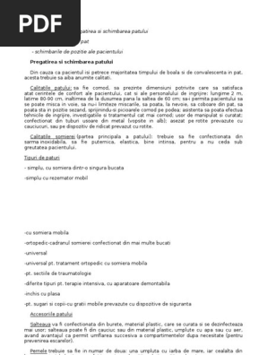 Pozitiile pacientului in pat. Display impartit in sapte sectiuni vizibil de la distanta. Activa pasiva sau fortata. Schimbarea lenjeriei de pat bolnavului imobilizat.