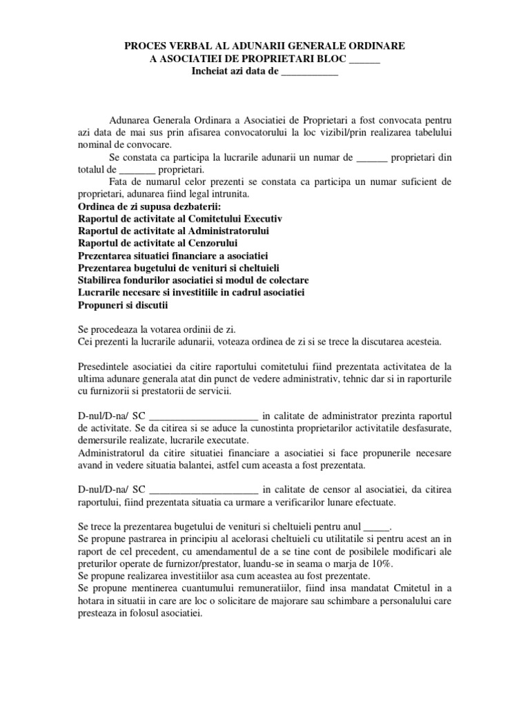 Comitetul executiv este format din președintele asociației și un număr par de membri nu mai mare de patru astfel încât numărul membrilor comitetului executiv nu poate fi mai mare de cinci. Raport verificare cenzor asociatia de proprietari bloc status pentru anul 2016 subsemnatul cristian dima in calitate de cenzor la asociatia de proprietari bloc status din sos. Membrii comitetului executiv sunt desemnați de către adunarea generală a asociației de proprietari dintre membrii asociației de proprietari. Comitetul executiv al asociatiei format din alecu marin presedinte gherghe emanoil membru si ursache ioana membru cu participarea administratorului asociatiei nedelescu stefan am procedat la intocmirea prezentei dari de seama ce reprezinta un mijloc de analiză a eficienţei activităţii asociaţiei şi un instrument de informare a dumneavoastra asupra gestiunii proprietăţii comune.