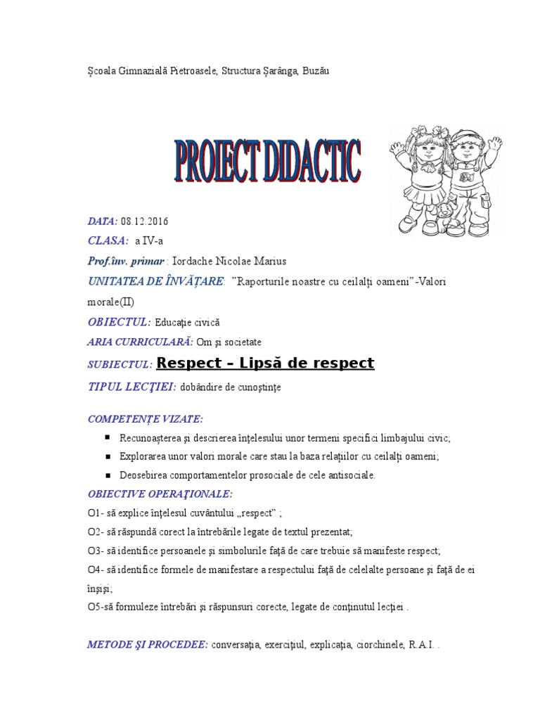 Respectul si lipsa de respect. Specială de acordare a gr. Lecția a fost susținută la insp. Lipsa de respect pentru tine se va vedea la o simplă privire. Proiect didactic respectul și lipsa de respect 27 februarie 2017 10 08.