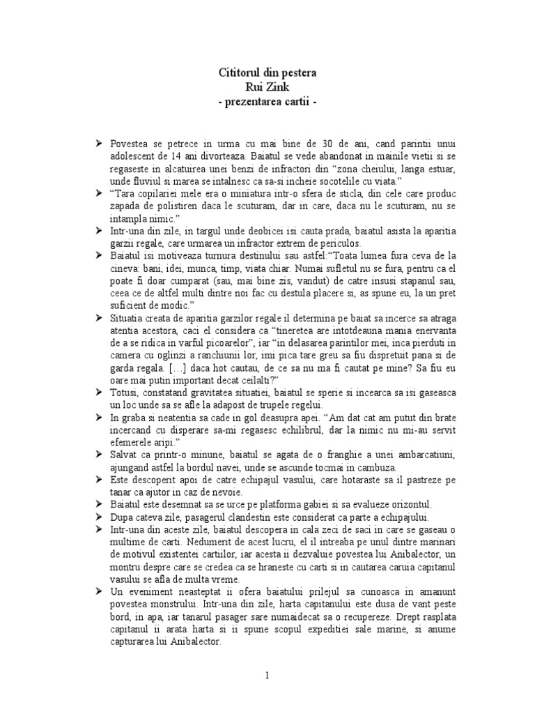 Report rui zink cititorul din pestera please fill this form we will try to respond as soon as possible. Cititorul din peșteră este titlul unui microroman scris de rui zink și face parte din literatura contemporană. Humanitas ce se întâmplă atunci când un profesor de literatură care a ştiut să se facă îndrăgit de studenţii săi şi care a citit probabil un munte de cărţi decide să îşi încerce şi talentul la scris. Puteti gasi foarte multe referate accesand categoriile din partea dreapta despre rezumat cititorul din pestera de rui zink.
