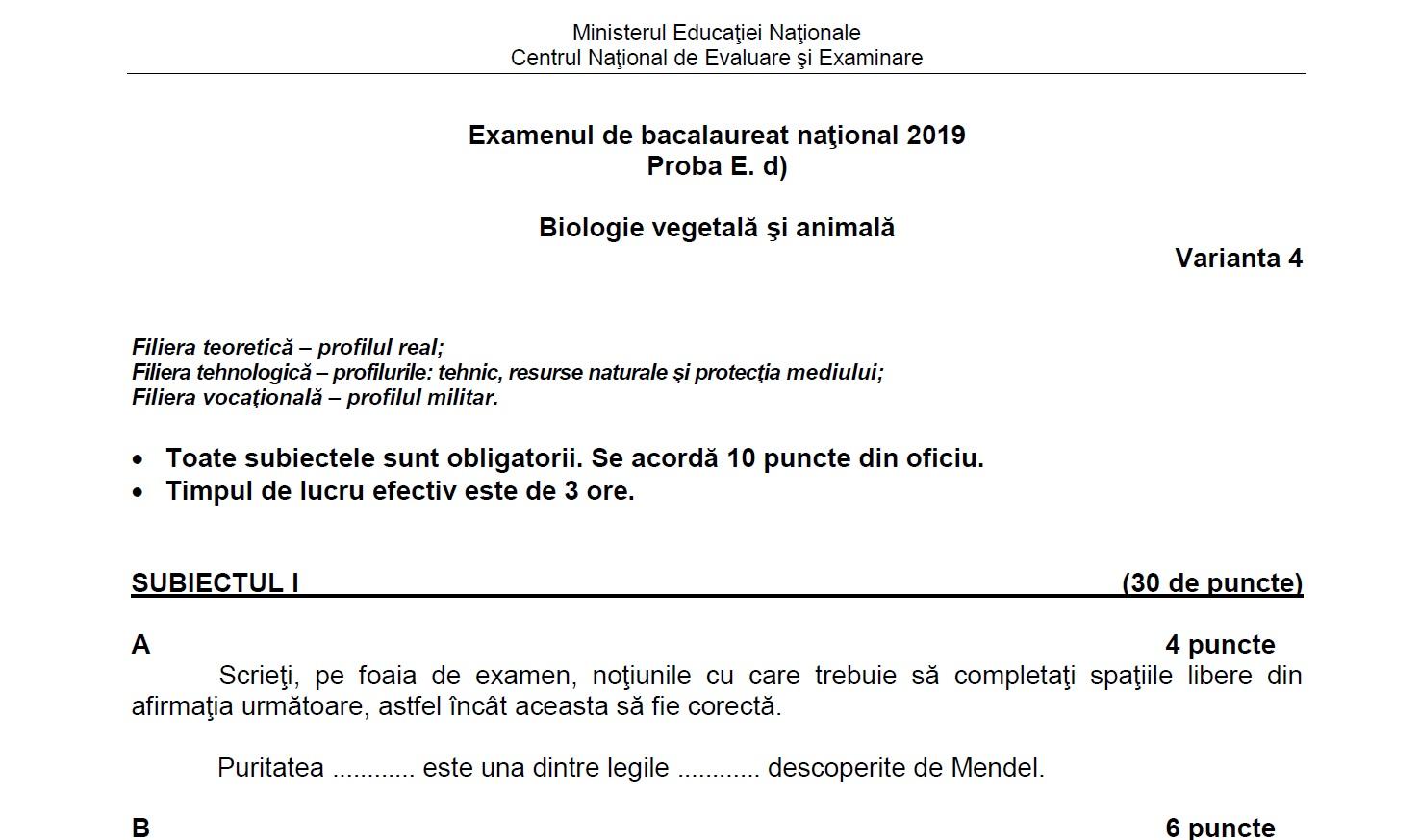 Subiecte Biologie Bac 2019 Edu Ro Subiecte și Bareme Ce A Picat Foto Antena 1