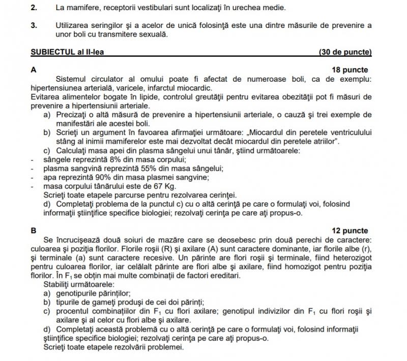 Subiecte Biologie Vegetală și Animală 2018