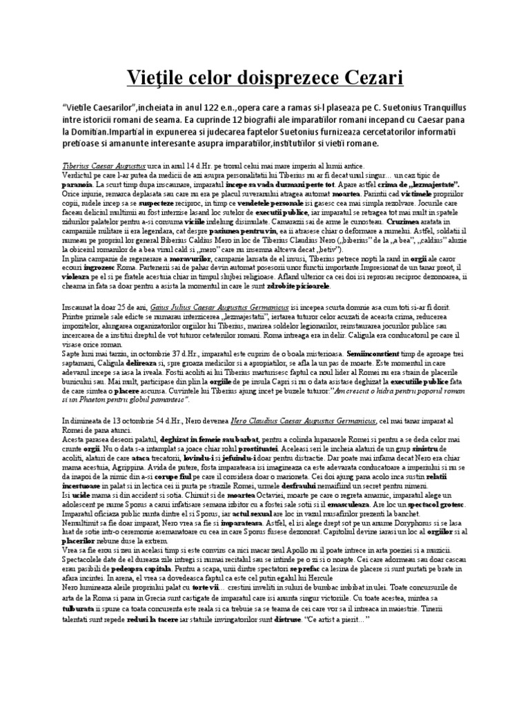 Suetonius vietile celor 12 cezari pdf. încărcat de ciprian penciuc. Gaius suetonius tranquillus. 329 din 2006 iar tu ai putea să te afli în situaţia de a le încălca acum. 285 din 2004 prin oug nr.