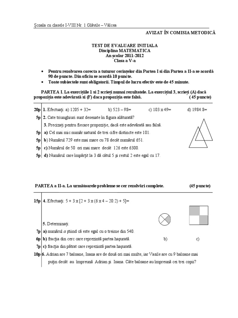 Evaluare initiala la matematica clasa a iv a a 2017 2018. 0 stele 0 review uri. Evaluare inițială matematică clasa a iv a. Vizualizaţi 0 review uri 470 descărcări adăugat la.