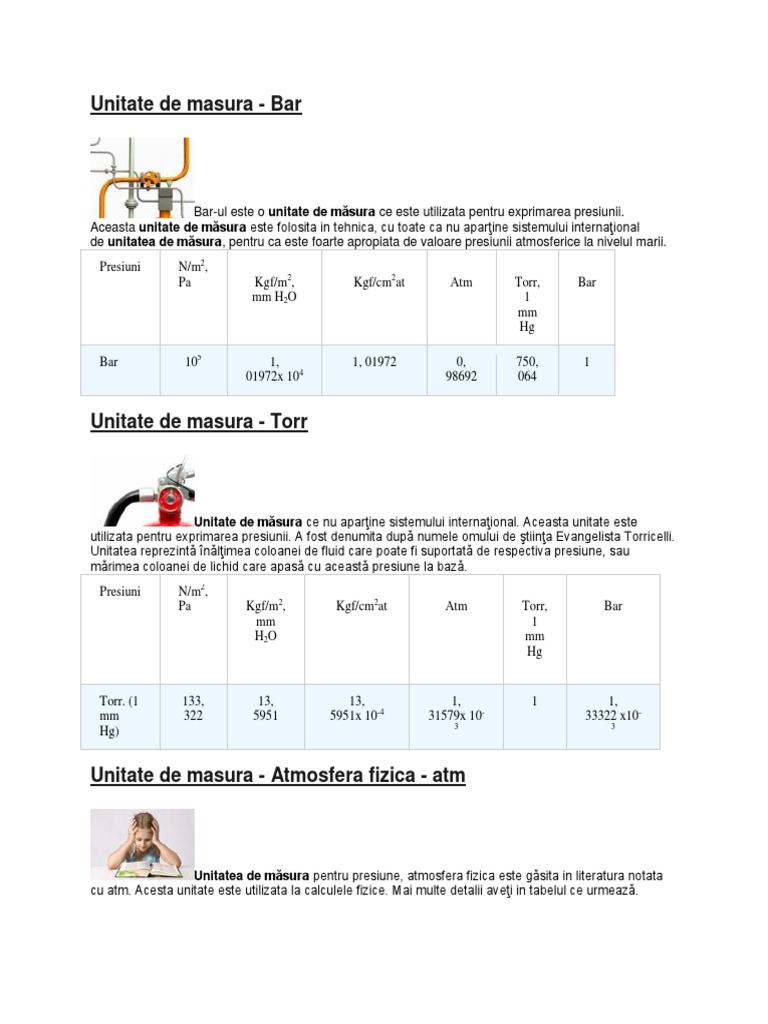 Unități de măsură uzuale pentru presiune. Se mai folosesc si alte unitati de masura cum ar fi bar ul. Pascalul se scrie cu p mare deoarece provine dintr un nume propriu blaise pascal. Măsurarea presiunilor se poate face cu manometrul.